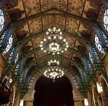 Inside, the great hall displays murals of famous local men, painted by Colin Gill in 1925.[4] It also contains murals of The Muses Contemplating Northampton, painted by Henry Bird in 1949.[7][8] A statue by Sir Francis Chantrey of Spencer Perceval, Member of Parliament for Northampton and the only British Prime Minister to have been assassinated, was originally unveiled in 1817 and is also on display inside.[1][9]