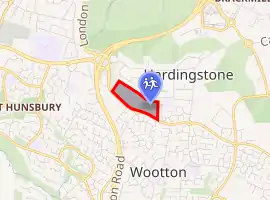 The school is about 1 mile (1.6 km) from Northampton town centre along the Newport Pagnell road (the B526, formerly part of the A50 road) which separates the school from Wootton.