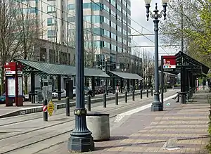 The station also provides a connection with Portland Streetcar's Loop Service (called the Central Loop until 2015), with southbound streetcars (the A Loop) crossing the MAX tracks just west of the platform and serving a stop one block to the north (stop ID 13611).