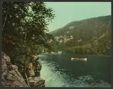 The mountainous region is underlain by metamorphic rock and glacial till. The ecoregion is flanked by several others including the: Acadian Plains and Hills, Eastern Great Lakes Lowlands, Northeastern Coastal Zone, Northern Allegheny Plateau, Ridge and Valley, and Northern Piedmont ecoregions.[1] The elevation generally ranges from 182 meters (597 ft) to 1,916.6 meters (6,288 ft) at the top of Mount Washington, the region's highest and most prominent point. The region is characterized by hot humid summers and cold snowy winters. The nutrient-poor spodosols and other cryic soil types of the region support boreal (north) and broadleaf (south) forests that cover the majority of the region. Ecotourism, forestry, and agriculture are the predominant land uses of the sparsely populated region.[2] Though much of the region was once cleared to make farmland, much of it has reverted into natural forested areas; to a lesser extent, dairy and crops are still grown in lowland valleys and beef cattle on upland pastures. The ecoregion has been subdivided into thirty-three Level IV ecoregions.[2]