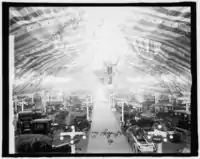 The Convention Hall was used extensively for various activities including a movie theater for silent movies, religious conventions, a roller skate rink, food shows, the Washington Auto Show[4] and dog shows organized by the Washington Kennel Club.[8] It was also used for High School graduations[9] and an armory for the DC National Guard.[10] On June 8-9, 1912, the Convention Hall was used for a banquet and a concert during the unveiling of the Columbus Fountain. The event was a major celebration in the city and gathered some of the most prominent individuals in the city. The building was one of the biggest venues at the time, allowing for large gatherings.[11]