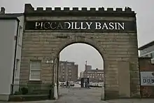 Piccadilly Basin, on the Rochdale Canal, is a redeveloped area between Manchester Piccadilly station and Great Ancoats Street. The area includes flats and offices as well as bars.