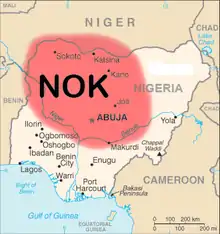 The Nok culture, an ancient culture dominated most of what is now Northern Nigeria in prehistoric times, its legacy in the form of terracotta statues and megaliths have been discovered in Sokoto, Kano, Birinin Kudu, Nok and Zaria. The Kwatarkwashi culture, a variant of the Nok culture centred mostly around Zamfara in Sokoto Province is thought by some to be the same or an offshoot of the Nok.[3]