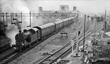 The Churchbury Loop from Bury Street Junction, near Enfield, and Cheshunt, had been dormant so far as passenger use was concerned, since 1909. In 1960 it was electrified and reopened as part of a new electrified suburban network; the line was retitled the Southbury Loop. At first six trains an hour were run, although this was later reduced. The new suburban electric trains ran as far as Bishop's Stortford and Hertford. For the time being the southern part of the N&ER route remained unelectrified, but electrification was provided from May 1969.[1][16]