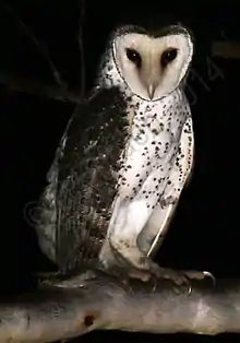 The northern masked owl (Tyto novaehollandiae kimberli) is a large forest owl in the family Tytonidae. The northern kimberli subspecies was identified as a novel race of the Australian masked owl by the Australian ornithologist Gregory Macalister Mathews in his 1912 reference list of Australian birds.[1] The northern masked owl occurs in forest and woodland habitats in northern Australia, ranging from the northern Kimberley region to the northern mainland area of the Northern Territory and the western Gulf of Carpentaria.[2][3] While the Australian masked owl is recognized as the largest species in the family Tytonidae (barn owls), the northern masked owl is one of the smallest of the Australian masked owl subspecies.