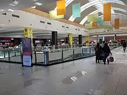 Federated Department Stores, then-owners of the Bullock's and Broadway chains, converted the Bullock's to Macy's in 1996 and closed the Broadway, although it was planned to become a Bloomingdale's.[14] A year later, Robinsons-May consolidated its two stores into the store at the southwest corner of the mall. The Robinsons-May at the northwest end was demolished for a movie theater, while the former Broadway store was subdivided for smaller mall shops.[15] General Growth Properties acquired the mall and began construction on the outdoor promenade that replaced the former Broadway. It opened in 1999 with Borders Books & Music and several restaurants.[16] When Macy's acquired Robinsons-May in 2006, the Robinsons-May store became a Macy's Home Store.[17] The mall was renovated in 2013,[18][19] including new tile and paint throughout the mall concourses, redesign of the common spaces, upgrades to the main courts, food court and an outdoor patio expansion. The entire mall was brought up to ADA standards.[20]