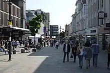 Northumberland Street is a major shopping street in the city of Newcastle upon Tyne, in the North East of England. It is home to a wide range of different retailers, banks and cafes, and in terms of rental per square foot, Northumberland Street is the most expensive location in the UK outside London to own a shop. There are currently over 51 retailers including pubs on Newcastle's Northumberland Street.[1]
