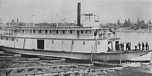 While waiting, work was done to strengthen Northwest for the trip, including boarding up the bow, and stiffening the hull.[32] This work was supervised by Capt. A. Crowe, of Portland.[32][33] According to one report, this strengthening work was done at Vancouver, Washington.[34]