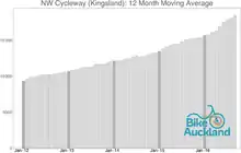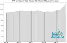 A cyclist count study for the Auckland Regional Transport Authority found that at the Great North Road section of the cycleway, the average daily number of users in 2008 was 532, a gain of 59% compared to the year before.[15] In 2010, this success trend continued, with an increase of 70% over the 2007 levels to over 600 cyclists.[16]