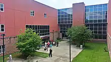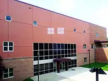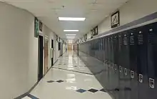 Northwestern is divided into four distinct "sub-schools": the A-Wing, B/G-Wing, C-Wing, and D/E/F-Wing.[5] Each can house between 600 and 700 students. The original plan was to physically divide the school into four smaller schools, hence the design theme of the building.[25] Sub-School A was intended to be the "School of Fine, Creative, and Performing Arts"; Sub-School B was to be the "School of Career and Consumer Education"; Sub-School C was to be a general facility that housed mainly elective courses, in addition the school's main offices, security office, and health center; and Sub-School D was to be "The School of Intensive and Specialized Instruction," which would house the school's honors and advanced placement program as well as the school's ESOL (English Speakers of Other Languages) program and Vocational Development (Special Education) program.[25] Students were not to be permitted to interact with students from other sub-schools,[25] and were to be isolated within their sub-school for the majority of the school day.[25] Due to scheduling conflicts and feasibility issues with this concept, the idea was dropped before the new building ever opened, while the idea of smaller learning communities was retained and revised to become less restrictive and isolating.