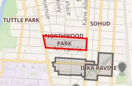 The Oakland & Northwood Avenue Area (sometimes referred to as Northwood Park) is located in the northern University District in Columbus, Ohio and is bounded by Patterson Avenue to the north and Northwood Avenue to the south & Pearl Alley to the west and Indianola Avenue to the east . It is sometimes considered to go as far north as Blake Ave.
