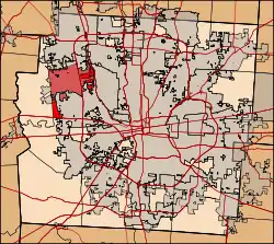 Located in the western part of the county, it is composed of several small "islands", separated due to municipal annexations. These islands border the following townships and cities: