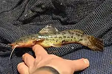 Notoglanidium macrostoma, also called the flatnose catfish and dwarf giraffe catfish is a species of claroteid catfish found in rivers in Angola, Cameroon, the Democratic Republic of the Congo, the Republic of the Congo and Gabon. It is active during twilight and at night and its diet consists of small fishes, crustaceans and insect larvae. It grows to a length of 24.0 cm (9.4 inches) TL.[3]