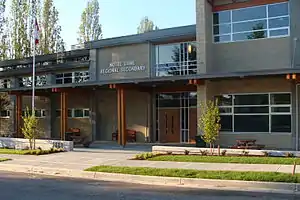 Notre Dame Regional Secondary is a co-ed Catholic Secondary school, under the administration of Catholic Independent Schools Vancouver Archdiocese (CISVA) school board inn Canada.[2] The school participates in sporting events under the name of the "Jugglers", with the team colours of Blue, White & Silver.