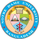 Notre Dame University Bangladesh or NDUB (Bengali: নটর ডেম বিশ্ববিদ্যালয় বাংলাদেশ) is a private Catholic university in Bangladesh. Located in Motijheel, Dhaka, the university was founded by the Congregation of Holy Cross in 2013.[1][2] After receiving approval from the Ministry of Education, the People’s Republic of Bangladesh, and University Grants Commission (UGC), Notre Dame University Bangladesh commenced its academic activities in the fall of 2014.[3]