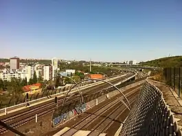 ![]() The Sluncová bridge section of Nové Spojení seen from the cycle path which replaced the previous Vítkov tunnel. | |||||||||||||||||||||||||||||||||||||||||||||||||||||||||||||||||||||||||||||||||||||||||||||||||||||||||||||||||||||||||||||||||||||||||||||||||||||||||||||||||||||||||||||||||||||||||||||||||||