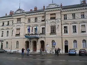 The main station building faces the Transalpina Square (Italian: Piazza della Transalpina, Slovene: Trg Evrope), which has formed part of the border between Nova Gorica and Gorizia since 1947.