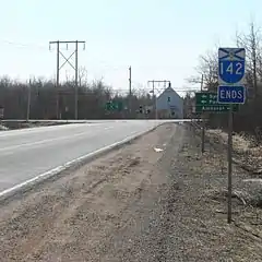 Highway 142 is a 2-lane limited-access road in Cumberland County, Nova Scotia, Canada. It links Highway 104 at Exit 5 in Salt Springs Station to the town of Springhill. The 6-kilometre (4 mi) highway crosses the Canadian National Railway main line about 4.5 kilometres (2.8 mi) outside Springhill. There are several logging roads that have access onto the highway.[1]