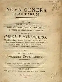 Nova genera plantarum, commonly abbreviated as Nov. Gen. Pl., was a register of plants published from Uppsala by Thunberg from 1781 onwards, listing new genera. Contributing editors were
