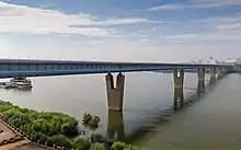 Novosibirsk Metro Bridge is a metro bridge over the Ob River in Novosibirsk, Russia. It connects the stations Studencheskaya and Rechnoy Vokzal of the Leninskaya Line of the Novosibirsk Metro. It is the longest covered metro bridge in the world.