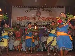 ![]() The Nuakhai bhetgeet performed by artists on the occasion of Nuakhai Juhar in Sambalpur | |