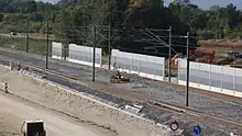 The permanent track and the overhead line on the northern section between Ilmenau and Erfurt would be built between August 2010 and November 2013,[87] on the middle section between Coburg and Ilmenau between December 2012 and December 2015[88] and on the southern section between Bad Staffelstein and Coburg between January 2013 and December 2015.[89] The contracts, which comprise the fixed track, including the foundations of the masts for the overhead line and wind and noise protection equipment, were let for the approximately 44 kilometre-long middle section for around €104 million[90] and the approximately 22 kilometre-long southern section for around €60 million.[91]