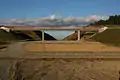 The construction work concentrated first on the 23 kilometre-long section "bundled" with the A 71 between Erfurt and Arnstadt. Construction of the almost 37 kilometre-long section between Erfurt and Ilmenau began in April 1996 and was almost completed in 2005.[71] These included the Augustaburg, Behringen and Sandberg tunnels as well as the 1,100 metre-long Gera Viaduct at Ichtershausen and the 570 metre-long Wümbach Viaduct.