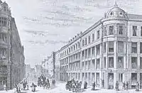 It was first proposed to clear the area in the 1840s but nothing happened. In September 1872, a committee was established. It received four proposals and the newly founded Kjøbenhavns Byggeselskab (Copenhagen Building Company) was ultimately charged with renewing the area. The new, wide street Ny Østergade was inaugurated in 1876.[2]