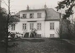 At the turn of the 19th century, the inn Bakkehuset was owned by Knud Engelbreth Langberg. In 1902 he constructed a new country house on the other side of the road and sold the old building to Knud Lyne Rahbæk who had lived regularly at the inn in the summer time since the 1780s. Engelbreth Langberg gave his new property the name Ny Bakkegård ("New Hill Farm") to distinguish it from Bakkegården ("The hill Farm") which from then on became known as Gammel Bakkegård ("Old Hill Farm") and would later be replaced by a new house by Carl Jacobsen.[1]
