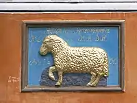 The house is just three bays wide and consists of three storeys and a roof with a two-bay wall dormer. Above the door is a painted stone relief depicting a lamb. The property was formerly known as Lammet (The Lamb) and the sign was used for identification in a time when house numbers had still not been introduced. The letters are the initials of the builder Henrich Lambertsen Engel and his wife Karen Nielsdatter Holm.