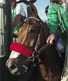 Nyquist (foaled March 10, 2013)[2] is a champion American Thoroughbred racehorse who won the 2016 Kentucky Derby and 2015 Breeders' Cup Juvenile, only the second horse to complete the Juvenile-Derby double.[3] He became the eighth undefeated winner of the Kentucky Derby, and the first since Big Brown in 2008. He received the 2015 Eclipse Award for Champion Two-Year-Old. He is the second Kentucky Derby winner after Morvich to win the race while undefeated after winning Champion Two Year Old the year before, and then never winning again.