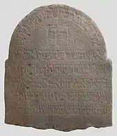 The form of a stele is made of vertical plates closed with two half-columns and topped with a pediment, most often in the shape of an arch or triangle. Most often there is an inscription board between the half-columns, and symbolic representations on the top.
