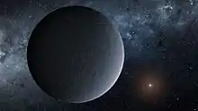 OGLE-2016-BLG-1195Lb is an extrasolar planet located nearly 13,000 light-years from Earth, orbiting the star OGLE-2016-BLG-1195L, which is only 7.8 percent the size of the Sun.[4][5] This planet was detected in 2017[3] using gravitational microlensing techniques managed by the Korea Astronomy and Space Science Institute and the Spitzer Space Telescope. It has a mass similar to Earth and is located about the same distance from its host star as the Earth is from the Sun. However, the host star is so small that it may not be a star at all.[4] It may be "a brown dwarf or an ultracool dwarf" instead, so the planet is likely far too cold to be habitable.[6][7] Based on its currently observed properties, the 'iceball' planet may be described as a very cold Earth-like exoplanet.[4]