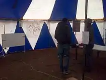 The "OPlatz" (Oranienplatz) movement was a pro-immigration protest movement that worked for an open-arms policy in the admission of migrants and refugees into Germany and in specific opposition to the third Dublin agreement, Residenzpflicht, "Lagers" or refugee camps and for the refugee’s right to work and study in Germany. From October 2012 to April 2014 the group maintained a protest encampment in the Oranienplatz plaza in Kreuzberg, Berlin. The "OPlatz" movement was composed mostly of African asylum applicants, who had come from camps all over Germany in an act of civil disobedience against theResidenzpflicht.[1] Groups active in the organisaton included Women In Exile, International Women Space and the Voice Refugee Forum.[2] After the autonomous clearing of the camp in 2014 and in face of the rejection of most refugee applications, the group remains active and raises awareness for their cause through their webpage and information point at the Oranienplatz.