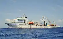 ORV Sagar Nidhi is an ice-strengthened multidisciplinary vessel operated by the National Institute of Ocean Technology, India. It was constructed at Fincantieri, Italy. The 104-metre-long vessel[1] has fully automatic diesel-electric propulsion equipped with dynamic positioning system, azimuth thrusters, and a winch to hoist 60 tonnes from a depth of 6,000 metres.[2]