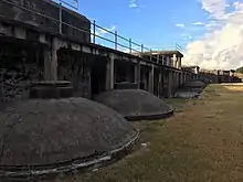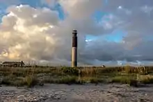 While Native Americans most likely used the island for fishing, the first permanent settlement took place in the 1830s on the island's east end at Fort Caswell.[3] Now utilized as a Christian retreat and conference center, during the Civil War the fort defended Confederate positions on the North Carolina coast and subsequently served as an army training ground in World War I and a patrol/ communications base in World War II.[4] In 2013, along with the Fort Caswell Rifle Range constructed during WWI,[5] it was designated as a National Historic District.[6]