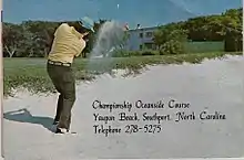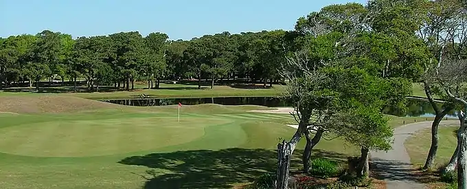 The first nine holes were completed in 1962 while the second nine opened to the public in 1975.[1] The course architect, George Cobb (1914-1986), in addition to being the co-designer of Augusta National's par 3 course,[2] is also the architect for over 100 other courses in the southeast US to include East Lake in Atlanta GA, Quail Hollow in Charlotte NC and Sea Pines in Hilton Head SC. The Oak Island layout features ultra-dwarf TifEagle greens [3] and Bermuda tees/fairways/rough with Long Leaf Pine, Live Oak and Yaupon Holly trees bordering most every fairway. In December 2017, the original 1962 clubhouse/restaurant was torn down and a new facility built which opened in December 2019.