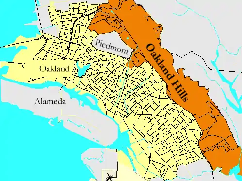 Oakland Hills is an informal term used to indicate the city neighborhoods lying within the eastern portion of Oakland, California.[1] The northernmost neighborhoods were devastated by the Oakland firestorm of 1991.