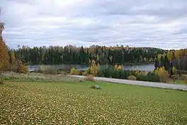 Obinitsa Lake (also known as Obinitsa Artificial Lake, Tuhkvitsa Reservoir, Tääglova Reservoir) is a lake in Võru County, on the eastern side of Obinitsa village in Estonia. The length of the waterline is 4534 metres and surface area of the basin is 43 km². The construction of Obinitsa Artificial Lake on the base of Tuhkvitsa Stream ended in 1995. The beautiful clear-watered lake is suitable for swimming, fishing as well as for boating trips. There is a sandstone outcrop and a cave that has formed because of springs on the left shore of Obinitsa Lake. The cave, associated with many legends, is called Juudatarõ. On the high banks of Obinitsa Artificial Lake stands the monument to the Singing Mother of the Seto People.[1]