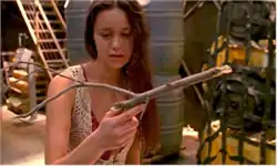 Fleeing the intense emotions, River runs down to the unoccupied cargo bay, where she spots a tree branch and picks it up. Suddenly, the real world returns, and she finds that she is holding one of Jayne's pistols while the crew surrounds her in a panic. Mal takes the gun from her and discovers it is loaded and ready to fire. He orders her not to touch a weapon ever again, and River runs off, crying.