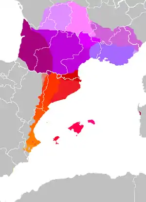 The Occitano-Romance or Gallo-Narbonnese (Catalan: llengües occitanoromàniques; Occitan: lengas occitanoromanicas), or rarely East Iberian,[1] is a branch of the Romance language group that encompasses the Catalan/Valencian and Occitan languages spoken in parts of southern France and northeastern Spain.[2][3]