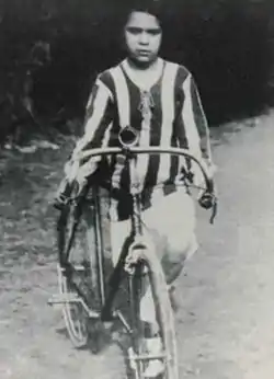 Zarco became a professional in 1925 at the age of 14, registering with the Federação Portuguesa de Ciclismo as Number 227. She continued to use a men's bicycle, wore shorts together with a shirt in the distinctive green and white stripes of her club, and cut her hair short. In 1924 the first women's "Tour of Lisbon" cycling race was held, with just three competitors. It was won by Cesina Bermudes, who went on to become a well-known obstetrician, with the other two competitors being her sister Clara and Estela de Oliveira. Bermudes managed to retain her title in the following year, but faced strong opposition from Zarco, who went on to win in the following three years. In 1926 she also won the "Tour of Porto", on a course she did not know in a city she had not been to.[1][3] She also won the “Tour of Setúbal”.[2][4]