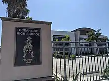 Oceanside High School is one of two high schools in the Oceanside Unified School District serving Oceanside, CA. Founded in 1906, OHS originally was located on the second floor of a one-room schoolhouse located at the site of the present campus. The school primarily serves Oceanside's beach communities and rests less than one mile from the beach. Throughout much of the first half of the 1900s the campus served as the High School for the majority of the North San Diego County region - its territory spanned as far south as Encinitas and east to Vista. In 1934, the school opened a junior college division, which operated on the eastern side of campus and existed until the 1970s when Mira Costa College opened its own campus.
