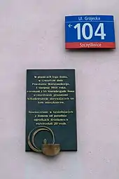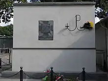 ![]() One of many memorials commemorating massacre sites in Ochota, located at the corner of Tarczyńska and Daleka Streets (17 civilians were murdered here, after which their bodies were burnt) | |