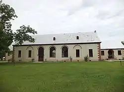 The main building is a one-story U-shaped building with 17 classrooms, a library, a 700-seat auditorium, and more. It has Colonial Revival details. It was built in 1934 to serve as both elementary school and high school. In the early 1950s, it became known as the Irwin County Elementary School when a separate high school was built about three blocks away.[2]