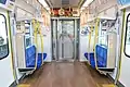 Seating accommodation consists of longitudinal seating. The interior also features a warm color palette, wood flooring, air purifiers, LED lighting, security cameras, and wheelchair spaces.[4]
