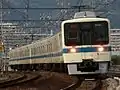 Built from 1982, the 8000 series was designed to help the Odakyu Electric Railway deal with the increasing number of passengers they had to carry from suburbs into the Tokyo region.[14] The 8000 series was the last Odakyu trainset to use their distinctive ivory body with blue accents; all future Odakyu commuter trains would use unpainted stainless steel bodies with the same blue accents.