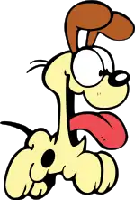 Odie is a fictional dog who appears in the comic strip Garfield by Jim Davis. He has also made appearances in the animated television series Garfield and Friends and The Garfield Show, two live-action/CGI feature films, and three fully CGI films.