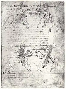 The origin of the name Odoacer, which may give indications as to his tribal affiliation, is debated. One suggestion is that Odoacer is derived from the Germanic *Audawakraz (Gothic *Audawakrs), from aud- "wealth" and wakr- "vigilant" or, combined, "watcher of the wealth."[17] This form finds a cognate in another Germanic language, the titular Eadwacer of the Old English poem Wulf and Eadwacer (where Old English renders the earlier Germanic sound au- as ea-).[18] On the other hand, historians Robert L. Reynolds and Robert S. Lopez explored the possibility that the name Odoacer was not Germanic, making several arguments that his ethnic background might lie elsewhere. One of these is that his name, "Odoacer", for which they claimed an etymology in Germanic languages had not been convincingly found, could be a form of the Turkish "Ot-toghar" ("grass-born" or "fire-born"), or the shorter form "Ot-ghar" ("herder").[19] Reynolds and Lopez's thesis was criticized by Otto J. Maenschen-Helfen, who pointed out the speciousness of their etymological analysis, since names between Germans and Huns were being used reciprocally.[20] Moreover, there is an often ignored fragment in the Suda that was almost certainly written by the well-informed contemporary, Malchus, who identified Odoacer as a Thuringian.[21] Finally, a passage from Eugippius' Life of Saint Severinus indicated that Odoacer was so tall that he had to bend down to pass through the doorway, another strong argument that he was unlikely a Hun, since they were not known to be tall.[22]