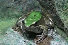 Odorrana livida, also known as the green mountain frog, green cascade frog, Tenasserim frog, bright frog, large odorous frog, or large-eared rock frog, is a species of frog in the family Ranidae.[2] It is known with certainty only from its neotype locality at the Dawna Range in Myanmar, near the border to Thailand,[1][2] but molecular data suggest that it is present in northeastern India and in peninsular Thailand too, while records from China refer to other species. In much of the literature, this species has been confused with other species, including Odorrana graminea.[2]